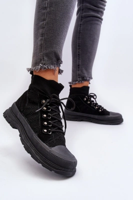 Damskie Wysokie Ocieplane Trampki Cross Jeans KK2R4042C Czarne