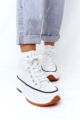 +7Damskie Wysokie Trampki Na Dużej Podeszwie Białe Trissy