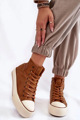 Damskie Wysokie Ocieplane Trampki Cross Jeans KK2R4043C Camel