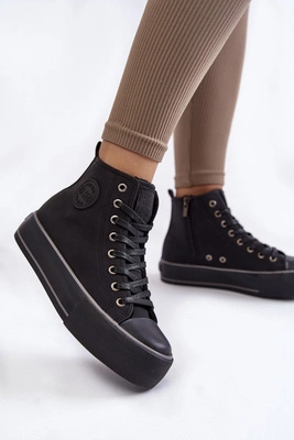 Damskie Wysokie Ocieplane Trampki Big Star KK274173 Czarne