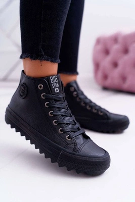 Damskie Wysokie Ocieplane Skórzane Trampki Big Star EE274355 Czarne