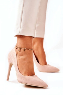 Zamszowe Wysokie Szpilki Beżowe Melany