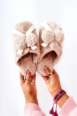 Papcie Futrzane Z Pomponami Beżowe Pamppy
