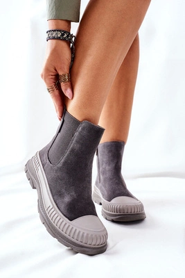 Damskie Botki Sztyblety Skóra Zamsz Big Star II274353 Szare