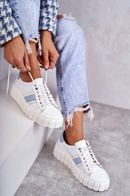 +1Damskie Skórzane Buty Sportowe Wiązane Biało-Niebieskie Ariva