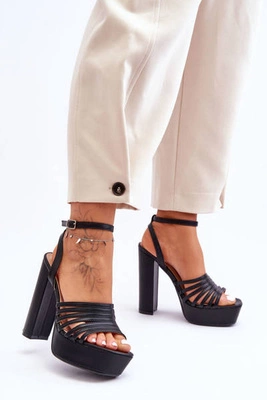 Sandałki Na Wysokim Słupku Czarne Maya