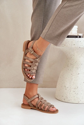Skórzane Sandały Damskie Na Płaskim Obcasie Zazoo 3688 Camel